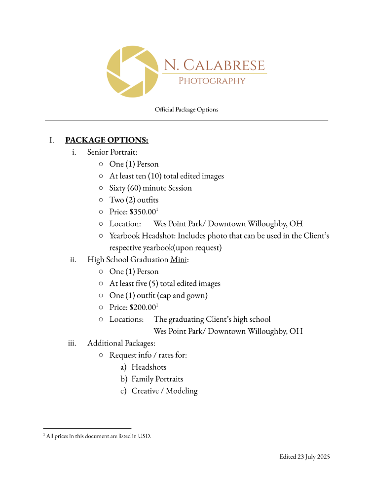 Contact me to inquire or begin planning your photoshoot!
